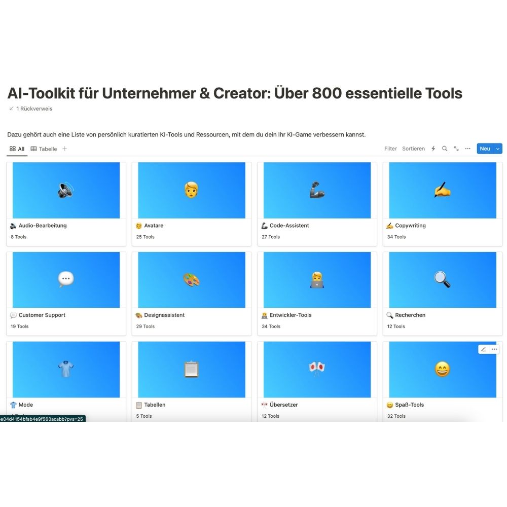 Eröffnen Sie neue Horizonte mit dem 'AI-Toolkit für Unternehmer & Creator': Entdecken Sie über 800 essentielle KI-Tools, die Ihre Arbeit revolutionieren!