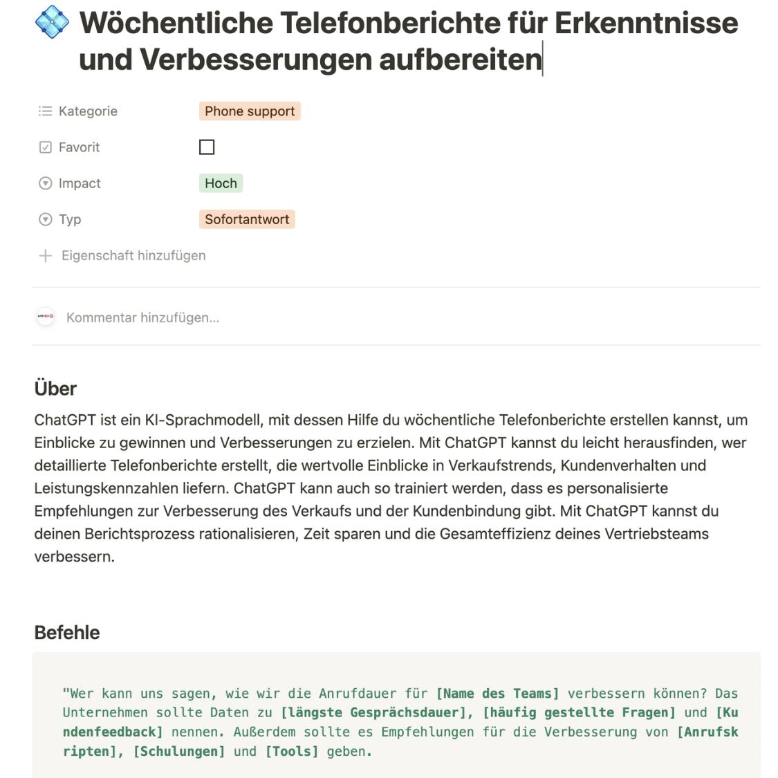 Jeder Befehl in 'Startup Booster' ist ein strategisches Werkzeug, das darauf abzielt, Ihre Kreativität zu entfachen, Ihre Prozesse zu optimieren und Ihr Wachstum zu beschleunigen. Stellen Sie sich vor, Sie könnten die üblichen Startschwierigkeiten überwinden, Ihr Produkt schnell auf den Markt bringen und eine loyale Kundenbasis aufbauen – all das mit weniger Aufwand und mehr Vertrauen in Ihre Entscheidungen.